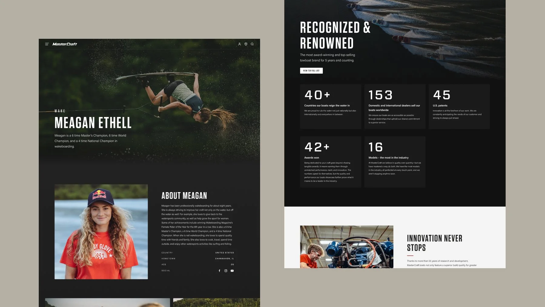 MasterCraft has forged an unparalleled legacy, pioneering the way forward in performance, comfort, quality, and innovation with their lineup of award-winning boats. I had the pleasure of collaborating with MasterCraft on developing a website that truly embodied the brand's signature luxury.