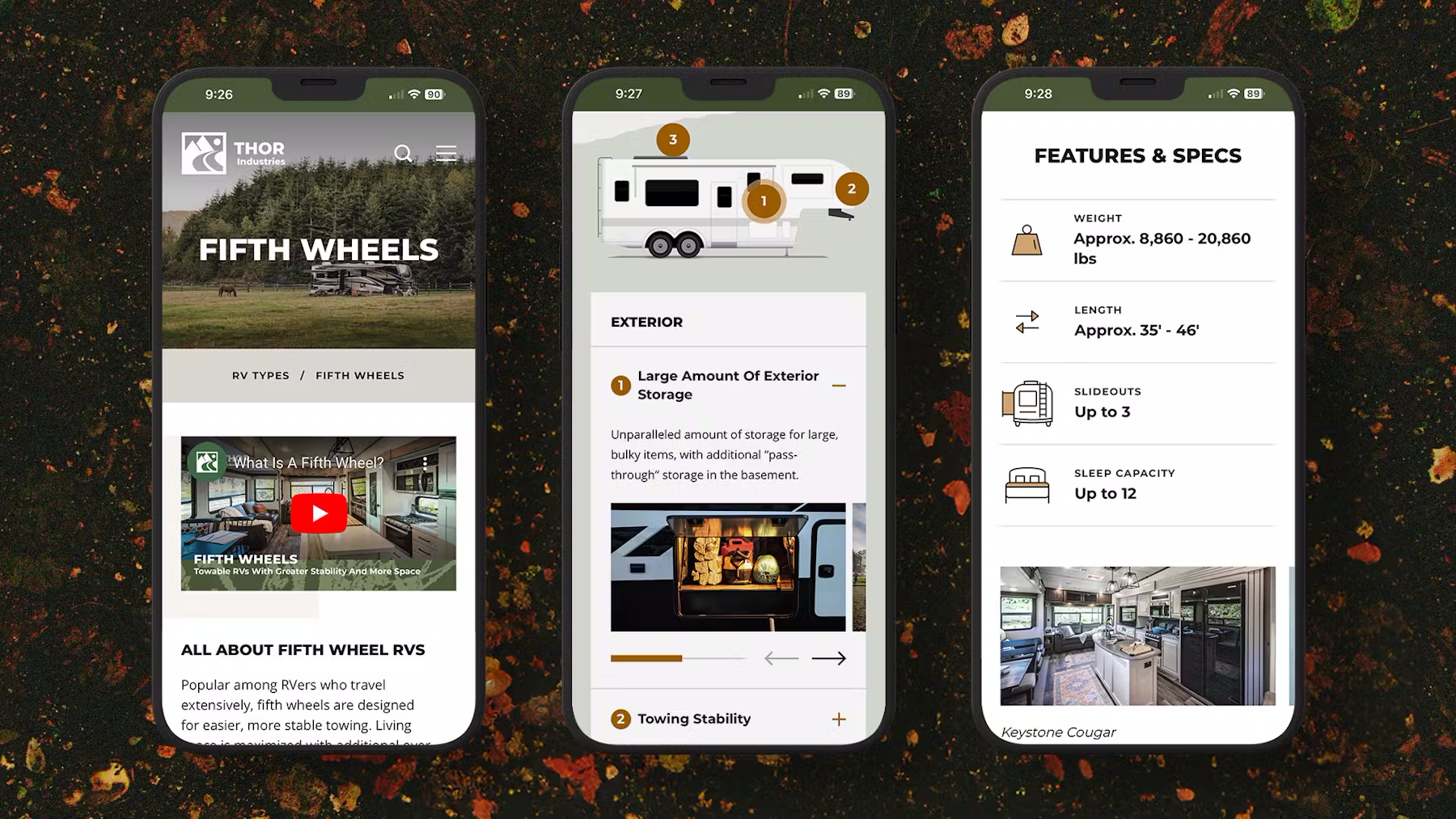 Together we created a strategic brief that outlined distinct objectives by page which informed our creative process. The design phase included wireframing, establishing user flows and multiple rounds of design cycles. We also conducted user testing on both mobile and desktop devices as well as AB testing. User testing provided insight into areas of friction and opportunities to optimize the experience which led to a final round of design and development prior to launching the experience for consumers. Listening to the voice of the consumer was paramount to the success of the THOR Industries website and our relentless drive for consumer centricity.
